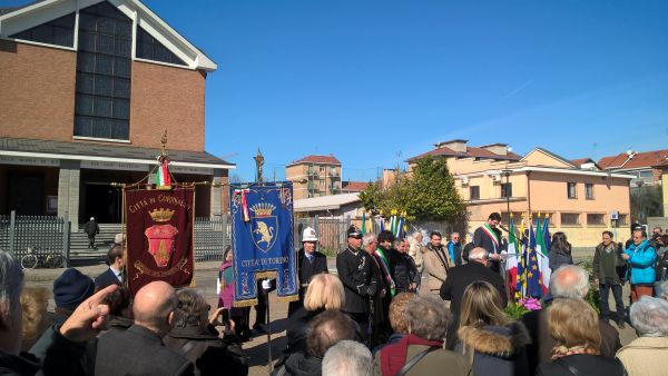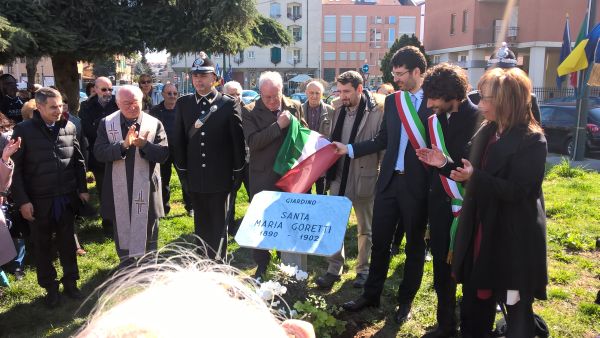 Grande affluenza di cittadini questa mattina alla cerimonia di intitolazione del giardino a Santa Maria Goretti all’angolo con le vie Pietro Cossa, Buffa di Perrero e Actis.