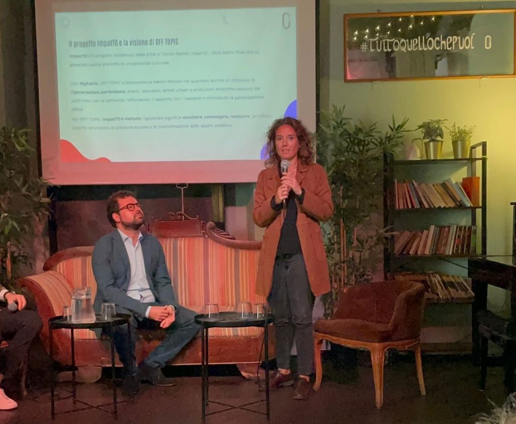 Esempi concreti di questo approccio sono le azioni sviluppate insieme alla Città di Torino per favorire l’inclusione giovanile, nel quadro del progetto YouToo, e il progetto MyFarini, sviluppato da Off Topic insieme a Stratosferica e finanziato da ImpatTO, bando della Città di Torino sostenuto con fondi PN Metro Plus per trasformare l’area lungo corso Farini e viale Ottavio Mai, con estensione sul Fiume Dora (all’interno della circoscrizione 7)  in un polo di aggregazione sociale e culturale anche serale, rivolto principalmente ai giovani residenti del quartiere.