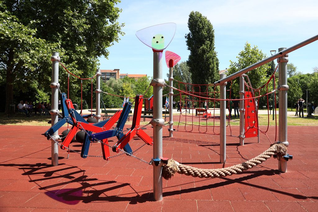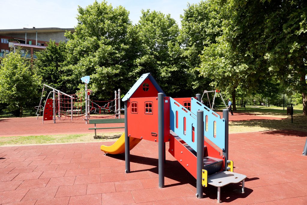 La nuova area giochi è suddivisa in due zone distinte e presenta attrezzature ludiche innovative, inclusive e a bassa manutenzione, che si integrano armoniosamente con l’ambiente naturale del parco. In totale sono stati installati sette nuovi giochi: un anello girevole, due altalene a cesto (una inclusiva), un grande gioco combinato per sviluppare agilità e coordinazione, una torre con scivolo, un gioco a molla e un pannello per la riproduzione di suoni musicali. L’intervento ha previsto inoltre la posa di nuova pavimentazione antitrauma, il rinnovo degli arredi urbani e l’installazione di pannelli informativi che illustrano le caratteristiche ambientali del parco.