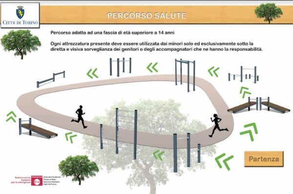 Composto di nove postazioni, il percorso ginnico si snoda lungo un anello che dall’ingresso di corso Trapani, prosegue sui viali Leonardo Bistolfi e Luigi Maria D’Albertis per ritornare al punto di partenza.
