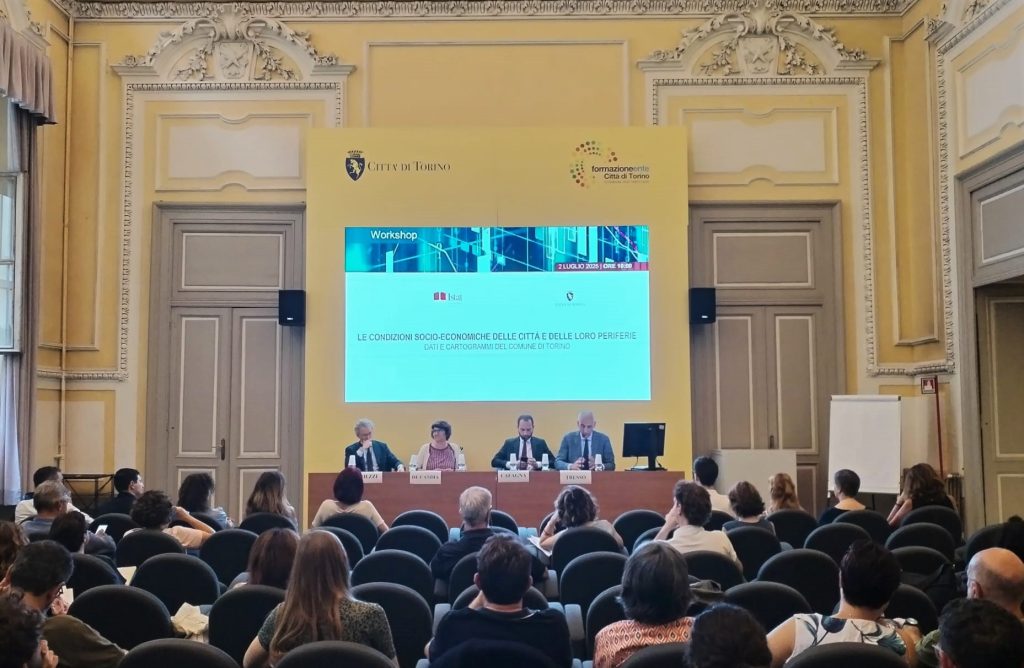Si è svolto mercoledì 2 luglio, nella Sala Bobbio in via Corte d’Appello, il workshop “Le condizioni socio-economiche delle città e delle loro periferie – Dati e cartogrammi del Comune di Torino”, promosso dall’Istat e dalla Città di Torino. L’incontro ha offerto un’ampia panoramica sulle caratteristiche demografiche, economiche e sociali delle aree sub-comunali della città, attraverso la presentazione di un ricco set di dati e rappresentazioni cartografiche.
