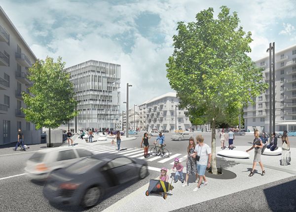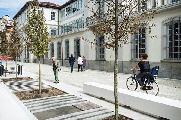 In via Bologna angolo corso Palermo prosegue la costruzione del nuovo centro direzionale Lavazza. Mentre si materializza la soletta del quarto piano, il cantiere interviene ancora sul suolo pubblico per riqualificarlo, così come è già avvenuto per lo spazio pedonale di via Pisa. Tra luglio e agosto sarà la volta di largo Brescia e di alcuni tratti di via Ancona e via Bologna: nel mese di luglio sarà il tratto di via Ancona tra via Pisa e il Lungo Dora Firenze ad essere chiuso al traffico, ma con gli accessi pedonali liberi. A partire dal 15 luglio e fino al 31 agosto la riqualificazione interesserà largo Brescia, con la garanzia di mantenere il transito dei veicoli per tutta la durata del cantiere. Nello stesso periodo il marciapiede e la corsia di via Bologna sul lato del cantiere verranno chiusi per la realizzazione degli impianti a servizio del nuovo edificio. Nelle immagini, i rendering delle opere di riqualificazione del suolo pubblico.
