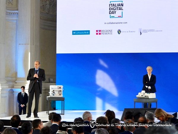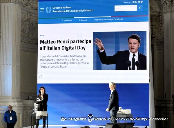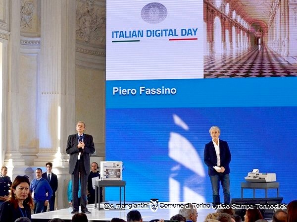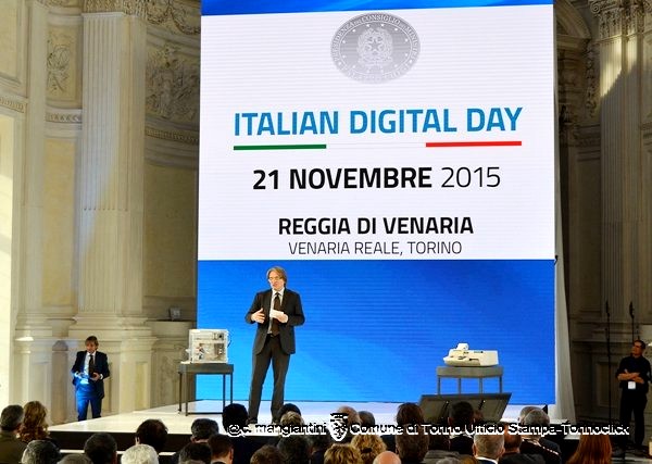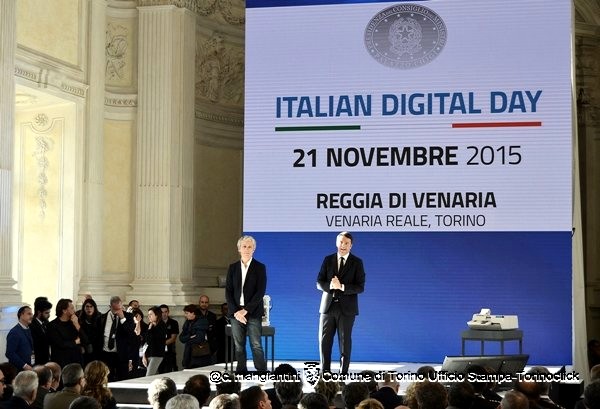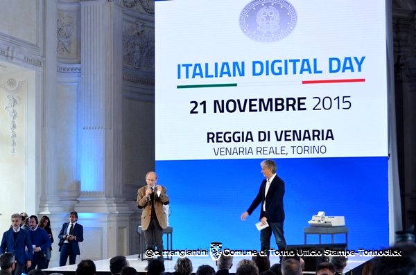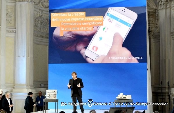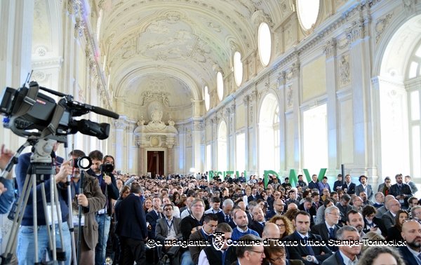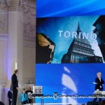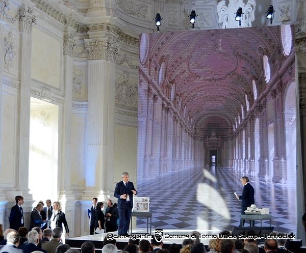 Alcune immagini dell’evento di oggi a Venaria. In alto, il sindaco Fassino sul palco presenta il video istituzionale (disponibile nel focus di questa settimana). Foto di Claudio Mangiantini.
